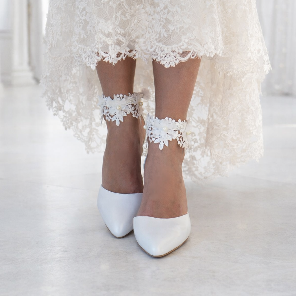 Adorned with beautiful French lace. They compliment the foot offering an elegant and delicate look.