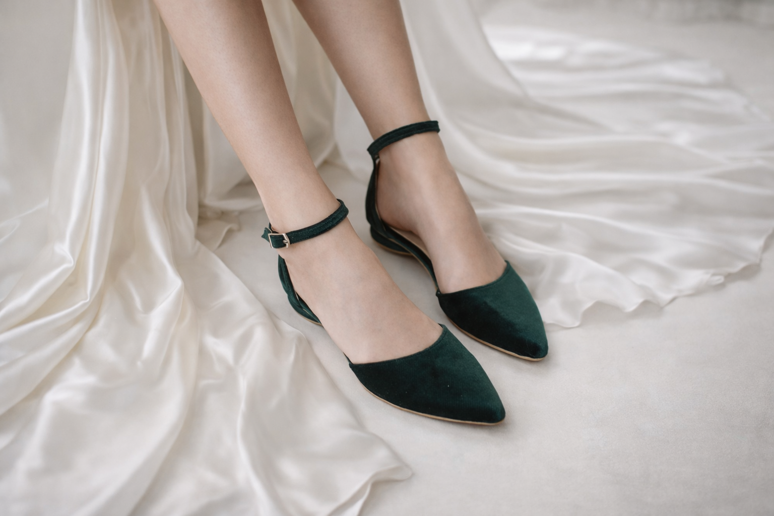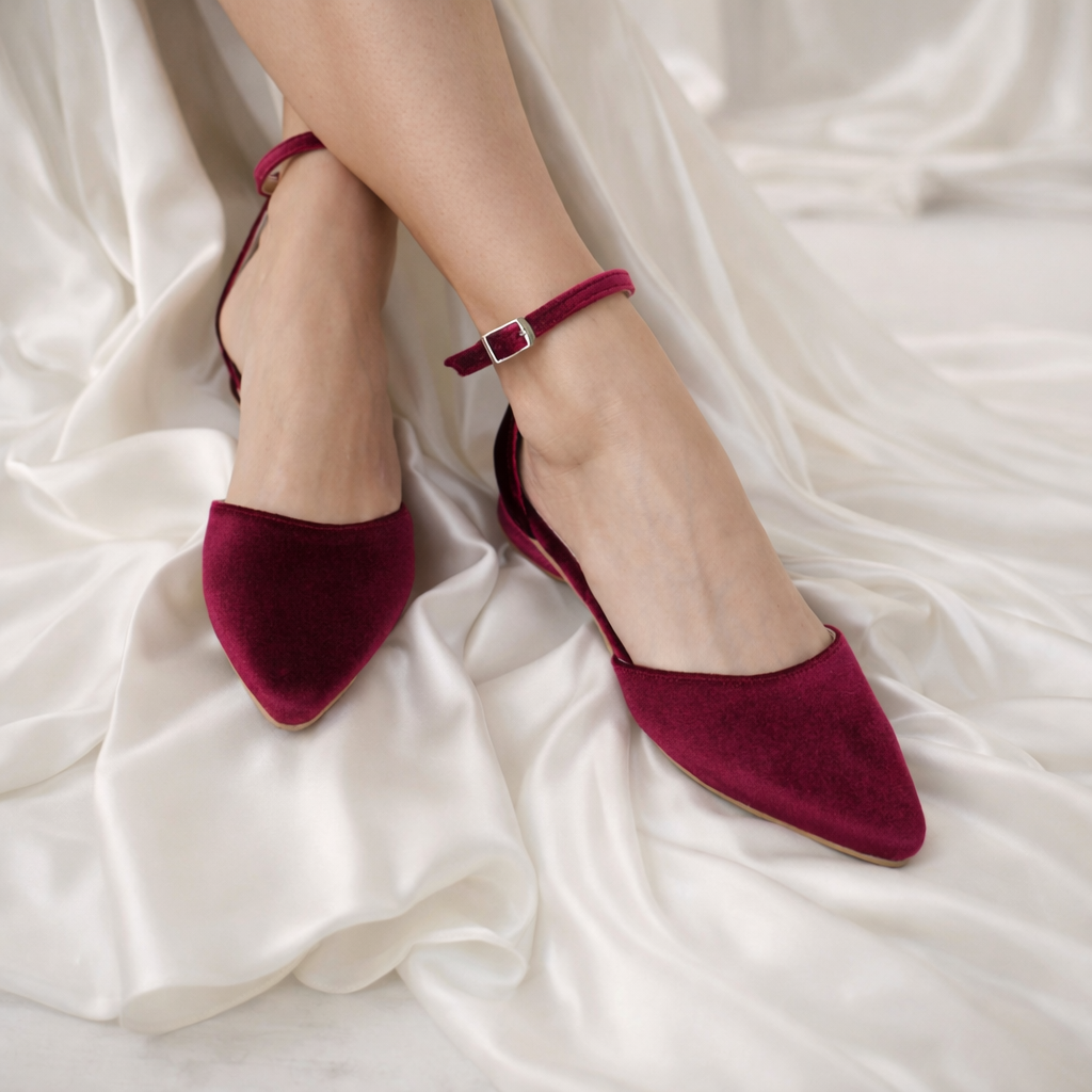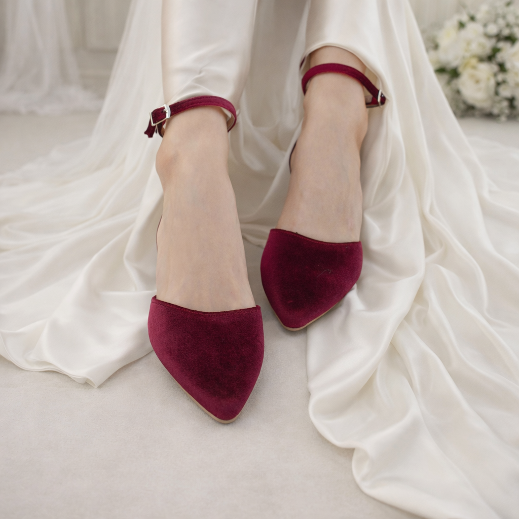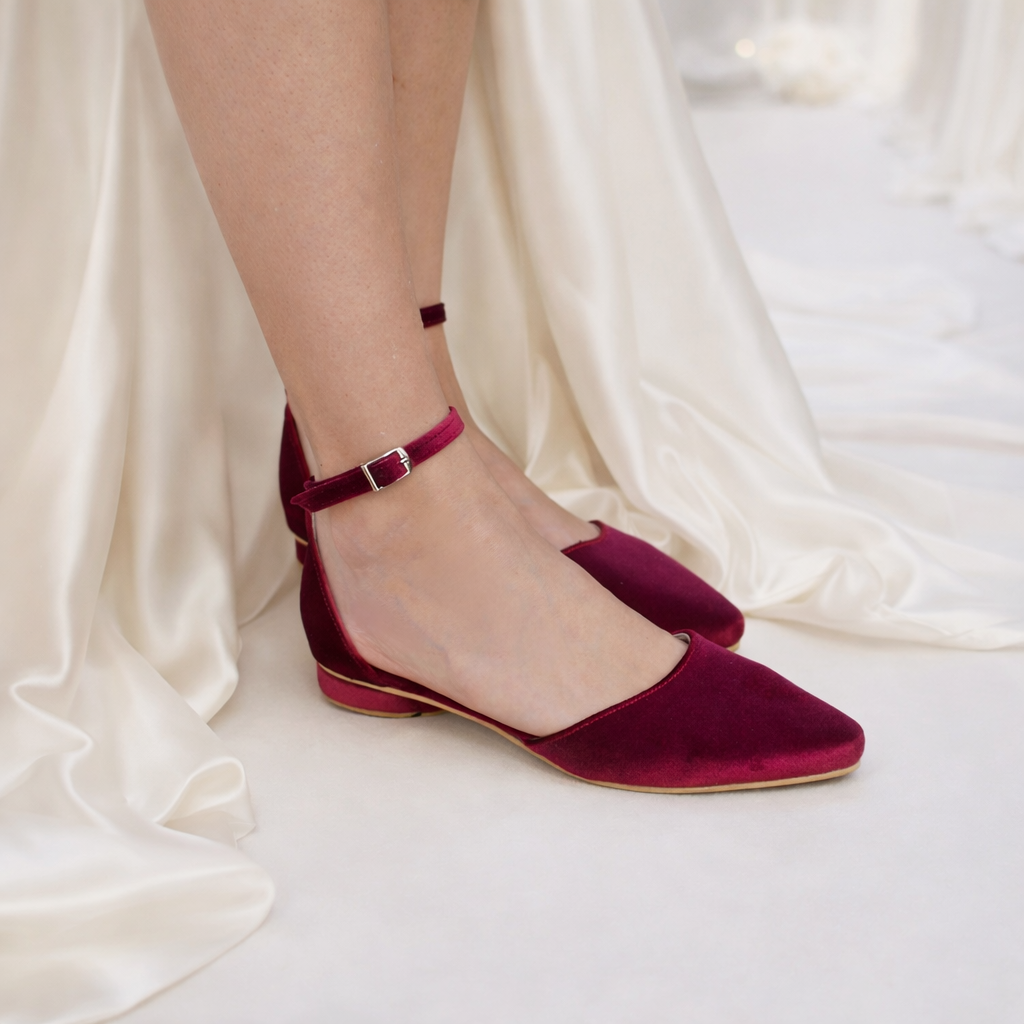 A lovely pair of wedding flats, made by the finest leather and lush velvet.