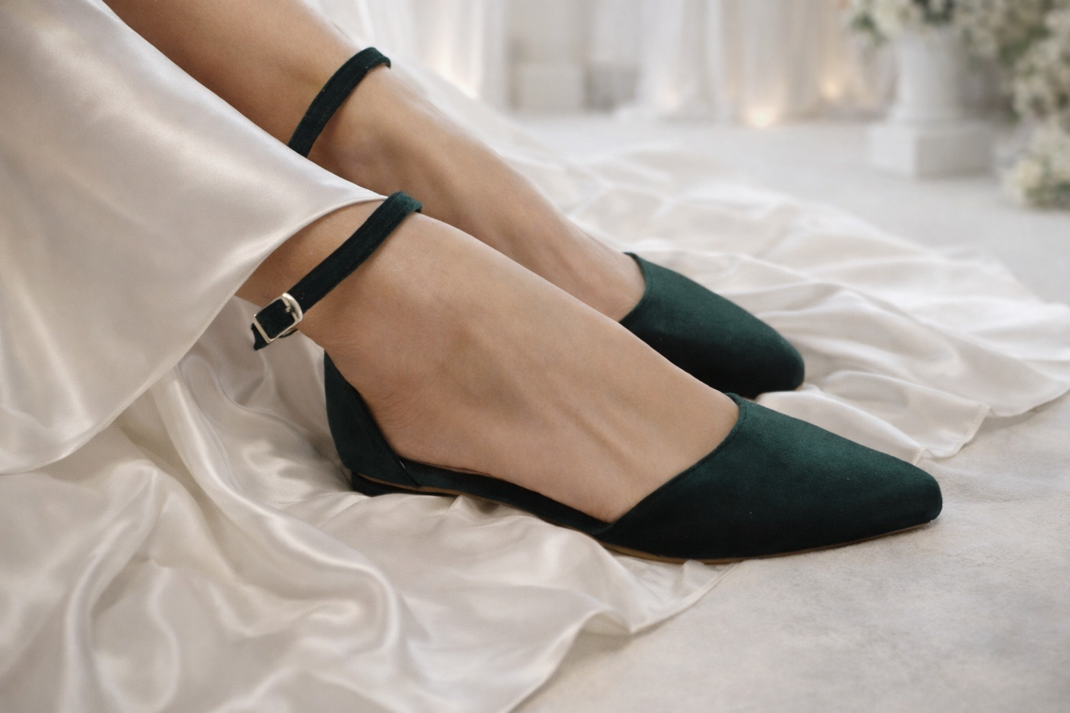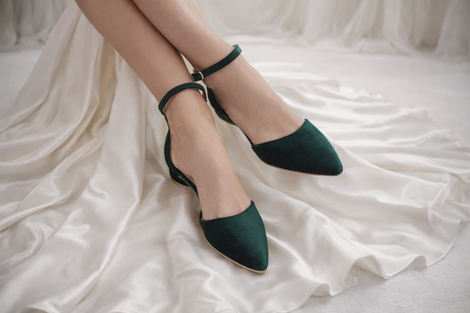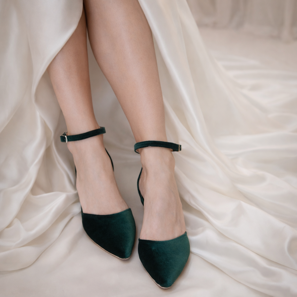A lovely pair of wedding flats, made by the finest leather and lush velvet.